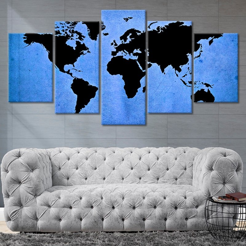 Blue Grunge World Skyline Canvas Wall Art Set l Stunning Canvas Prints